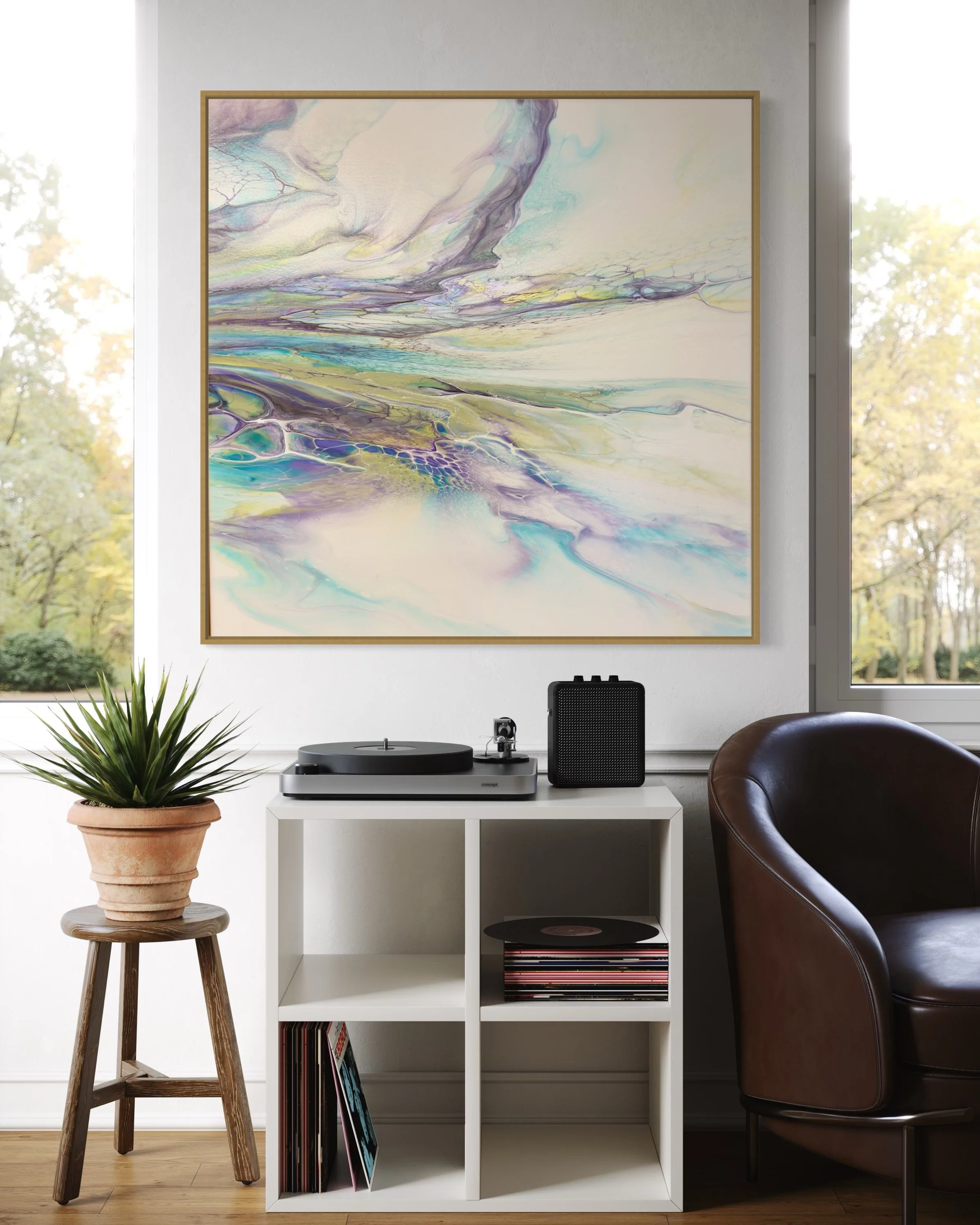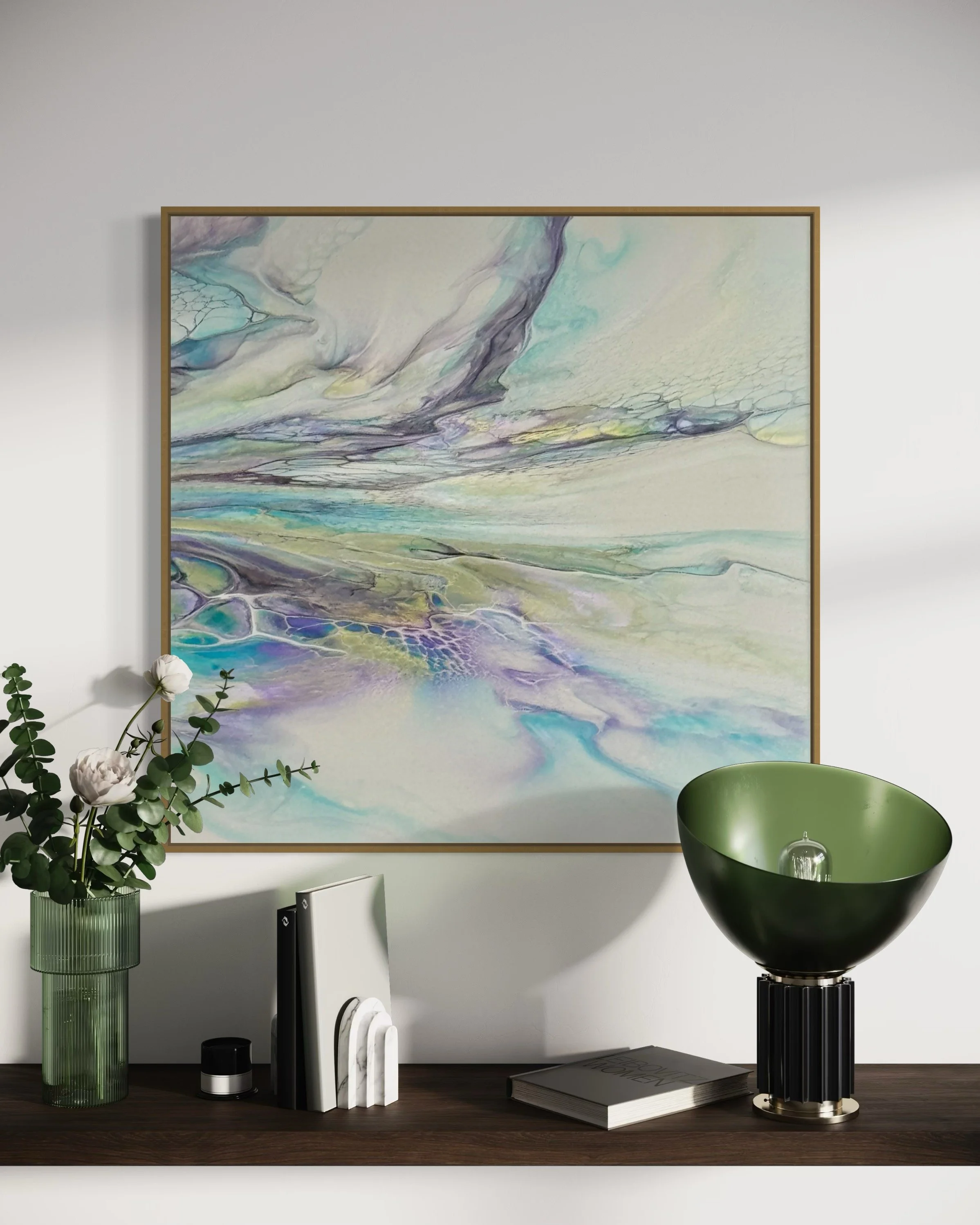 Gorgeous bloom painting on a 12×12 on a cradled wood board. Thin .75” profile nestled in a gold floater frame. Comes with a resin epoxy topcoat for shine and is ready to hang. Free shipping in the US.